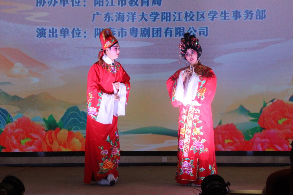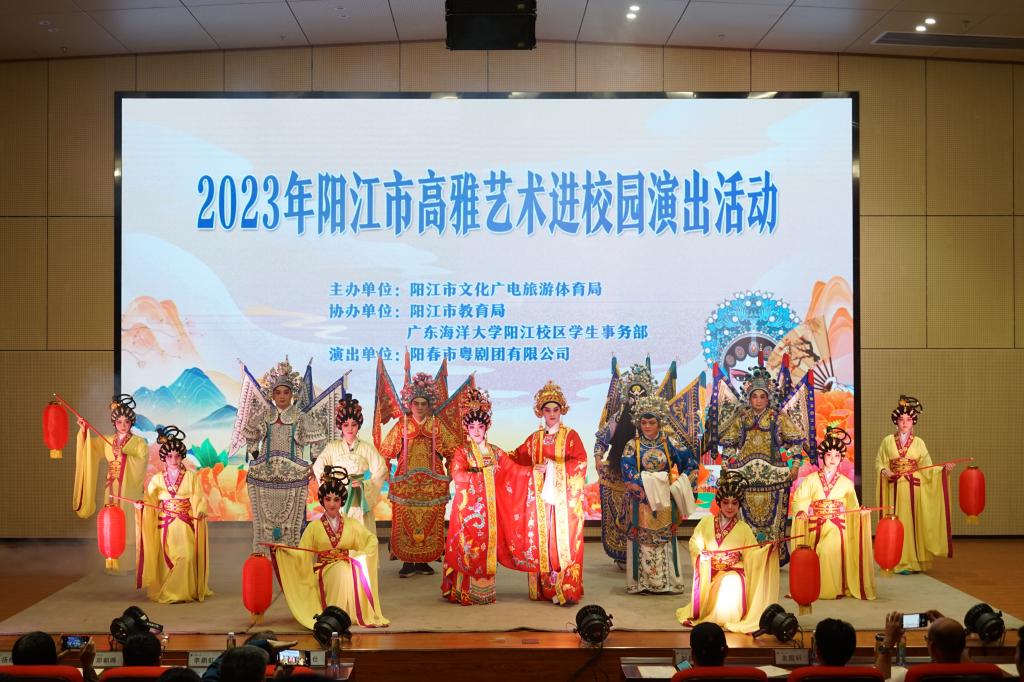 11月29日,由阳江市文化广电旅游体育局主办,阳江市教育局、广东海洋大学阳江校区学生事务部协办,阳春市粤剧团演出的“2023年阳江市高雅艺术进校园广东海洋大学阳江校区戏曲专场”活动在海纳楼113报告厅举行,为校区师生带来了一场文化视听盛宴,师生代表共320余人观看演出。
