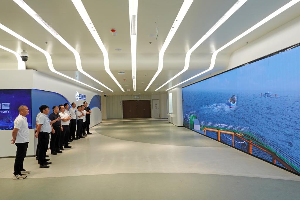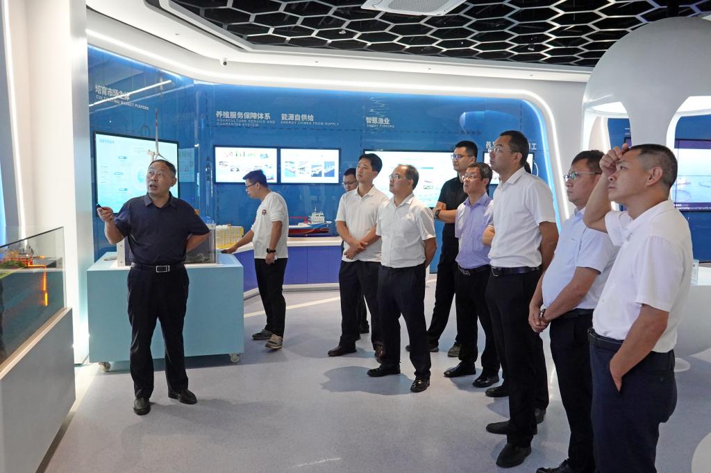 湛江湾实验室副主任洪鹏志带领调研组一行实地参观了实验室展示厅等地,详细介绍了湛江湾实验室的发展历程、领军人才、科研方向、海洋牧场建设以及实验室建设运营管理、机制创新等情况。湛江湾实验室,全称为南方海洋科学与工程广东省实验室(湛江),是省委、省政府第二批启动建设的广东省实验室之一,主要聚焦海洋装备、海洋能源、海洋生物三大领域,布局系列科研平台,开展科技攻关和产业孵化。