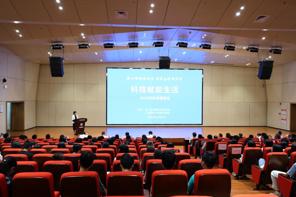 11月3日上午,由九三学社阳江市委员会和阳江校区联合主办的2023年“科技赋能生活”主题科学报告会在海纳楼113多功能报告厅举行。省科学技术厅厅长、九三学社广东省委副主委王月琴,阳江市副市长刘德伟,学校党委常委、副校长、阳江校区党委书记、管委会主任宁凌出席会议并致辞。校区领导周昌仕、毛琪、李鹏虹,九三学社阳江市委主委姜树勤及全体社员,阳江市科技局领导嘉宾以及校区师生代表参加报告会。