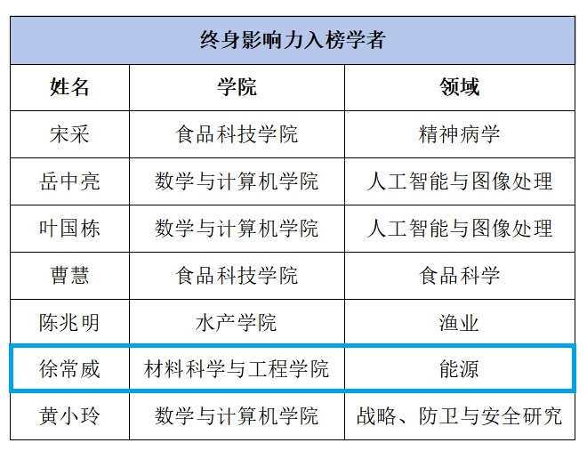 2023年10月4日,美国斯坦福大学发布了第六版《全球前2%顶尖科学家榜单》,我校16名学者入选全球前2%顶尖科学家榜单。其中,阳江校区材料科学与工程学院徐常威教授入选该榜单,上榜“终身科学影响力排行榜(1960-2022)”。