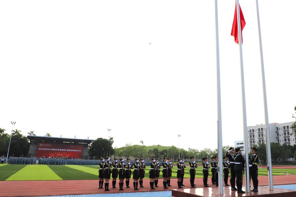 热血铸军魂,青春正当时。9月28日上午,2023级新生军训成果汇报暨总结表彰大会在行健运动场举行。学校党委常委、副校长、阳江校区党委书记、管委会主任宁凌,校区领导周昌仕、陈永强、毛琪,承训单位有关领导出席大会。校区相关职能部门负责人,各学院负责人、全体教官、跟训教师、2023级全体新生等1600多名师生参加大会。校区党委副书记、管委会常务副主任周昌仕主持大会。