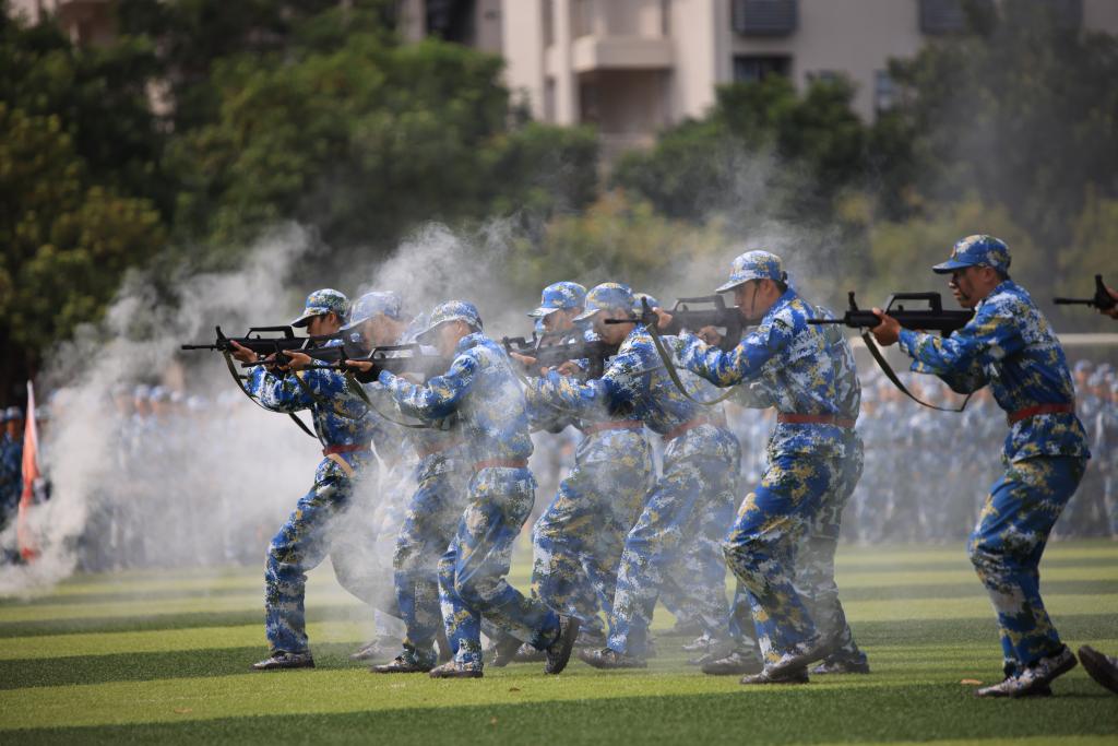 大会在雄壮的国歌声中拉开帷幕。“同学们好!”“同学们辛苦了!”宁凌在检阅方队时向教官和新生表示慰问。同学们步履铿锵、口号嘹亮、英姿飒爽,步伐中彰显着广海学子坚韧不拔、自强不息的精神风貌。军事汇报表演中,应急棍、擒敌拳、战术表演……,同学们动作干净利落。承训单位武警阳江某部首长林晓龙发表讲话,对同学们的训练成果表示充分肯定。