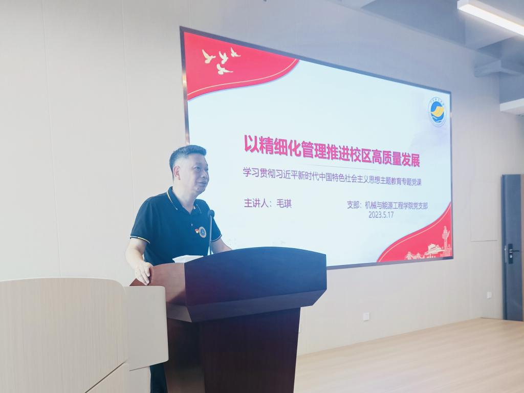 为深入学习贯彻习近平总书记视察广东重要讲话重要指示精神,按照校区党委关于主题教育的部署要求,5月17日下午,校区党委委员、纪委书记、管委会委员、综合事务部临时第一负责人毛琪到机械与能源工程学院,讲授题为“以精细化管理推进校区高质量发展”的主题教育党课。机械与能源工程学院党组织暨第一行政负责人陈扬枝主持,机械与能源工程学院第二行政负责人王贵、全体教职工、入党积极分子参加此次党课。