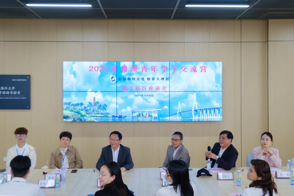 4月9日下午,我校港澳台事务办公室主任陈进军带领“2023年粤澳青年学子交流营”一行35人到阳江校区参观交流,并在济航楼302举行闭营仪式。校区管委会副主任张界新、商学院行政第一负责人李力及部分师生受邀参与座谈交流和闭营仪式。