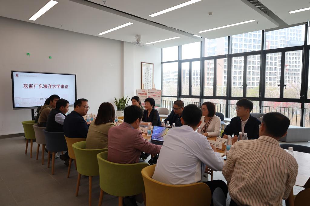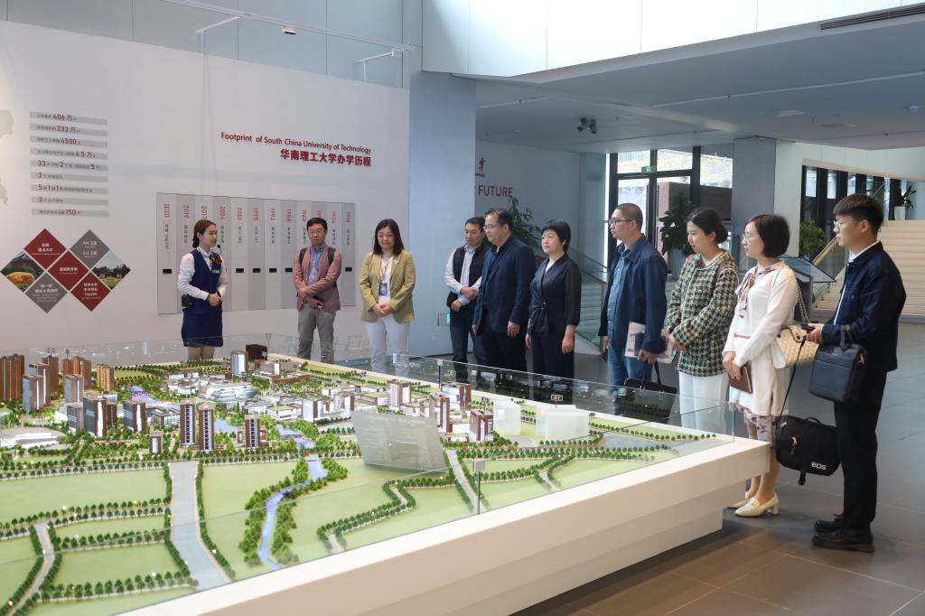 下午,调研团队前往华南理工大学国际校区进行交流学习。国际校区学生事务办公室副主任(兼)、铭诚书院院务主任吴耀华一行陪同调研队伍参观了校区展厅、智慧课室、创新工厂、明真阁图书馆、峻德书院等,观看《在C位,向未来》视频,了解华南理工大学百年办学历史、国际校区的设计与育人理念。在座谈会上,陈永强介绍了广东海洋大学与华南理工大学的深厚渊源,并指出今后也要继续落实建设互助帮扶的机制;吴耀华表示国际校区一定将自身的建设经验倾囊相授,促成校区间的相互督促与学习;邓朝晖首先感谢华南理工大学分享了方法创新、制度完善的工作经验,对广东海洋大学异地办学下开展学生工作具有很大的启发和借鉴作用,同时她还希望两校可以进一步加强交流,增进合作。