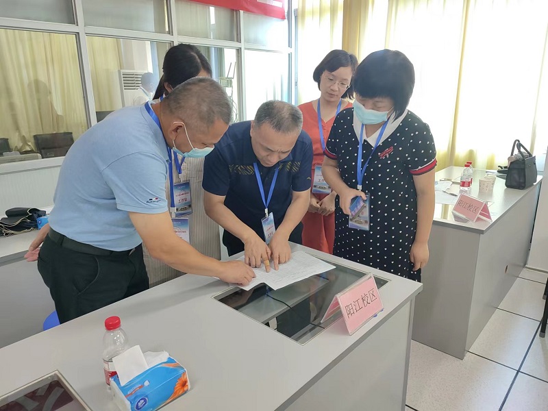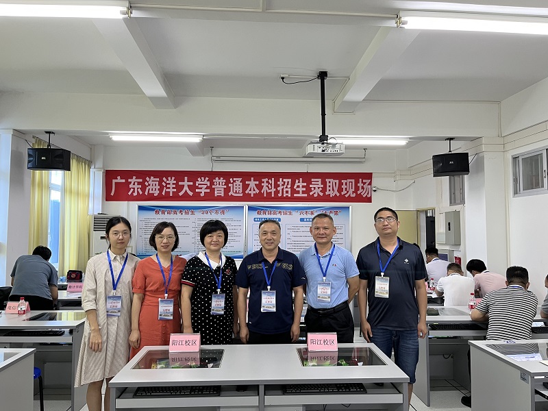 7月19日上午,广东海洋大学2022年本科招生录取工作在海滨校区实验楼有序进行。阳江校区学生事务部部长邓朝晖、副部长翁江峰及三位负责相关工作的同志参与招录工作。学校党委常委、副校长、阳江校区党委书记、管委会主任宁凌来到录取现场进行工作指导。