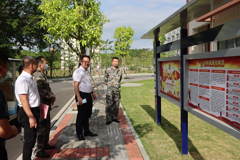 会后,军分区、人武部一行实地走访查看了校区的征兵宣传内容,双方从宣传栏选址、扩大宣传受众面和提高宣传质效等方面进行了探讨与交流。