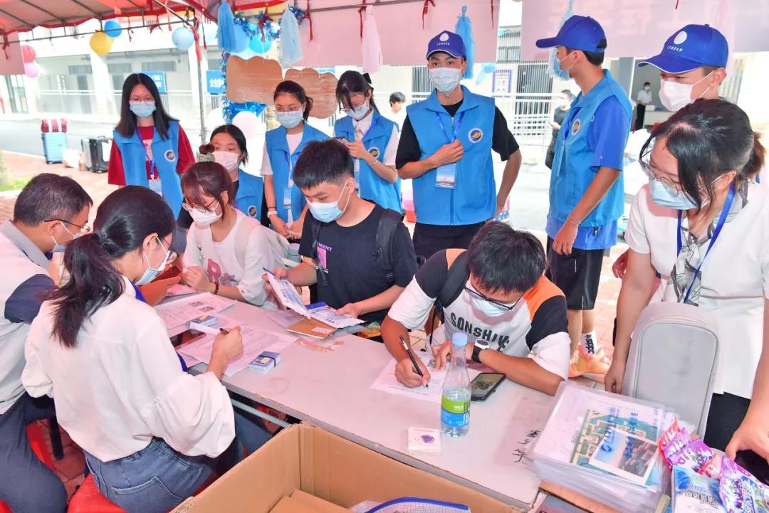 15日,两人早上6点半就开始了一天的迎新工作。经过提前培训、核酸检测、初次团建后,他们一群“小伙伴”被分成A、B、C三组志愿者,在校里校外帮助新同学搬行李、找宿舍,引导家长到校门口休息区。