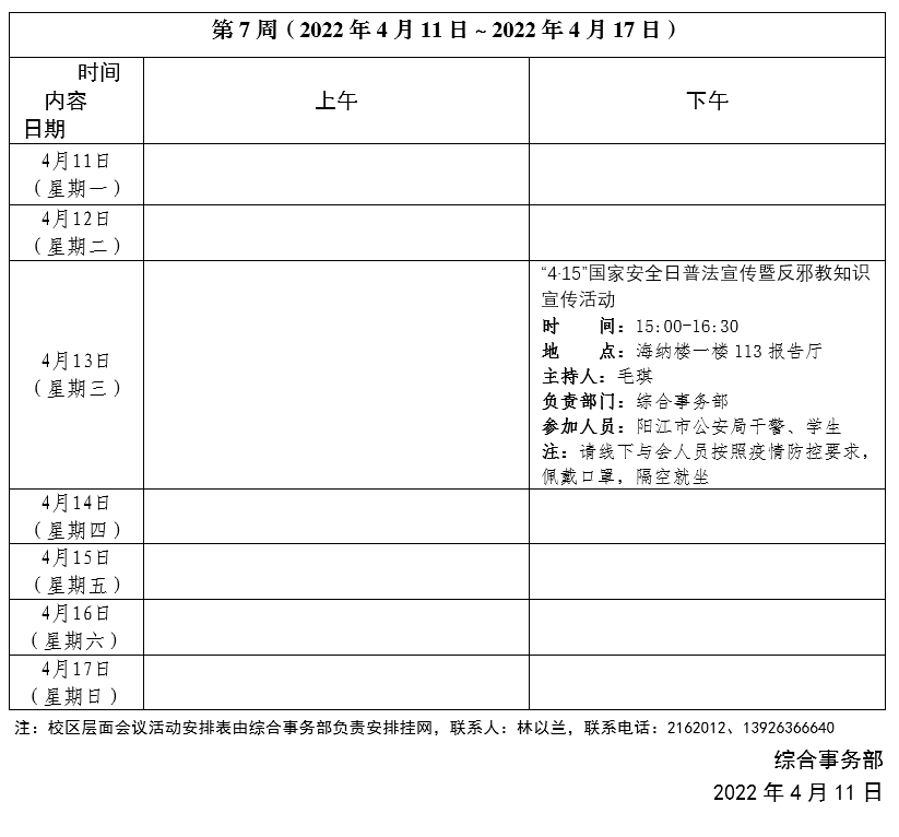 电话:0662-2162001(综合事务)、2162721(组织人事)、2162085(教学科研)、2162136(学生事务)、2162163(后勤服务)、2162096(资产财务)