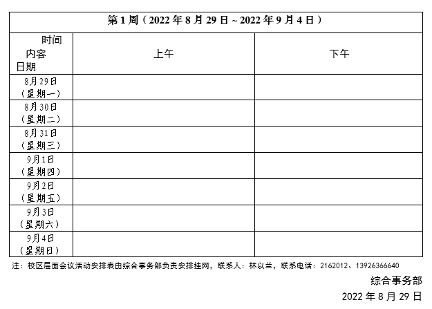 2022~2023学年第一学期第01周会议活动安排表