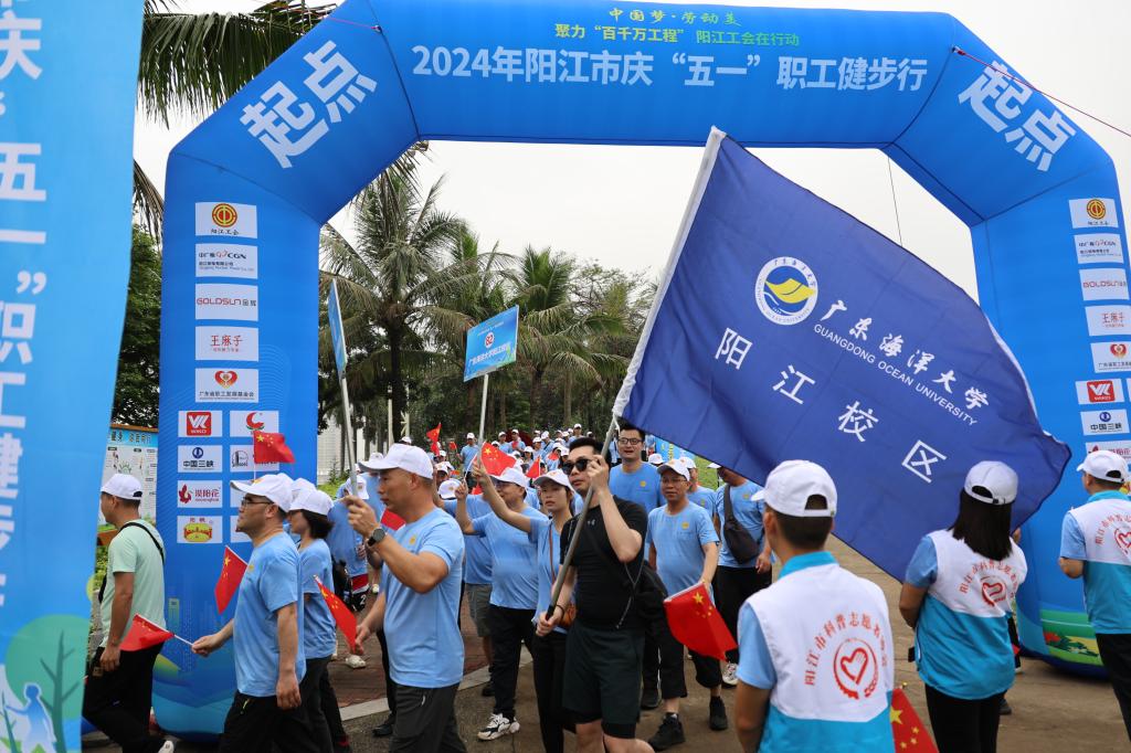 为加强职工思想政治引领,丰富职工文体活动,全面提振职工精气神,阳江市总工会4月24日在市鸳鸯湖公园举办2024年阳江市庆“五一”职工健步行活动。广东海洋大学阳江校区全体教职工受邀参加此次活动。